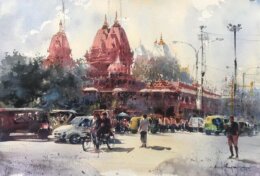 Heavens use their chartreuse painting brushes; Chapels, pagodas fan out their doors; Sun's print on my tea, the mad crowd rushes; High-pitched bargains at greengrocers' stores; Buses'…